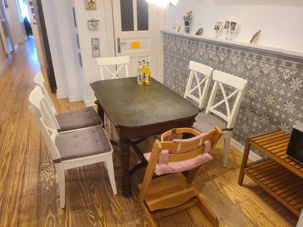 Weil wir selber im Ausland sind, suchen wir einen befristeten Mieter für unsere zentral gelegene, familienfreundliche Altbauwohnung in Hamburg-Eimsbüttel. Es handelt sich um eine ca. 115 Quadratmeter große 5-Zimmerwohnung mit Vollbad, Gästetoilette, Wohnküche und Garten (allerdings werden wir „nur“ vier Zimmer vermieten, ein Zimmer ist mit persönlichen Dingen beladen). Zimmer und Ausstattung: Wohnküche: Das Herzstück der Wohnung ist eine sehr geräumige, gemütliche Wohnküche mit Sitzecke, die komplett ausgestattet ist mit Geschirr, Töpfen, Pfannen, Backutensilien, Geschirrspüler. Das Wohnzimmer ist mit einem bequemen Sofa und Fernseher ausgestattet. Es gibt zwei Kinder-/Jugendzimmer, einmal mit Hochbett, einmal mit ausziehbaren Schlafbett, beide mit Blick zum...
