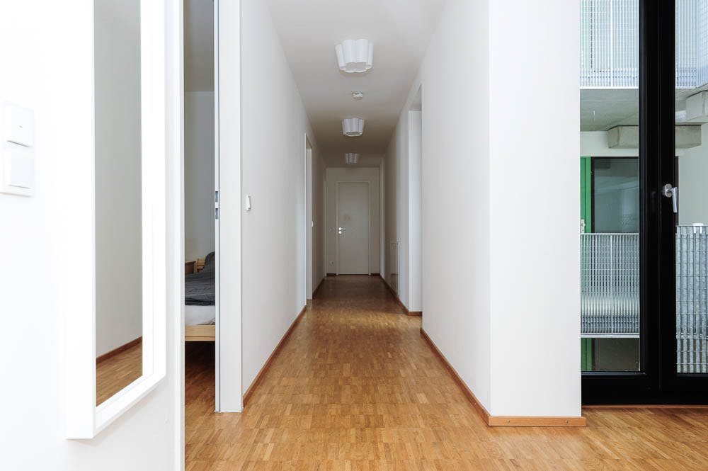 ROOM Our flats fulfil all your daily living requirements. Every flat comes readily equipped with a kitchen, including refrigerator, cooking equipment and dishes. Flats also include a washing machine and Wi-Fi Internet. Each room is fully furnished and offers a comfortable bed with fresh linen and a workspace. The area provides you with several shopping opportunities and excellent connections to public transport.