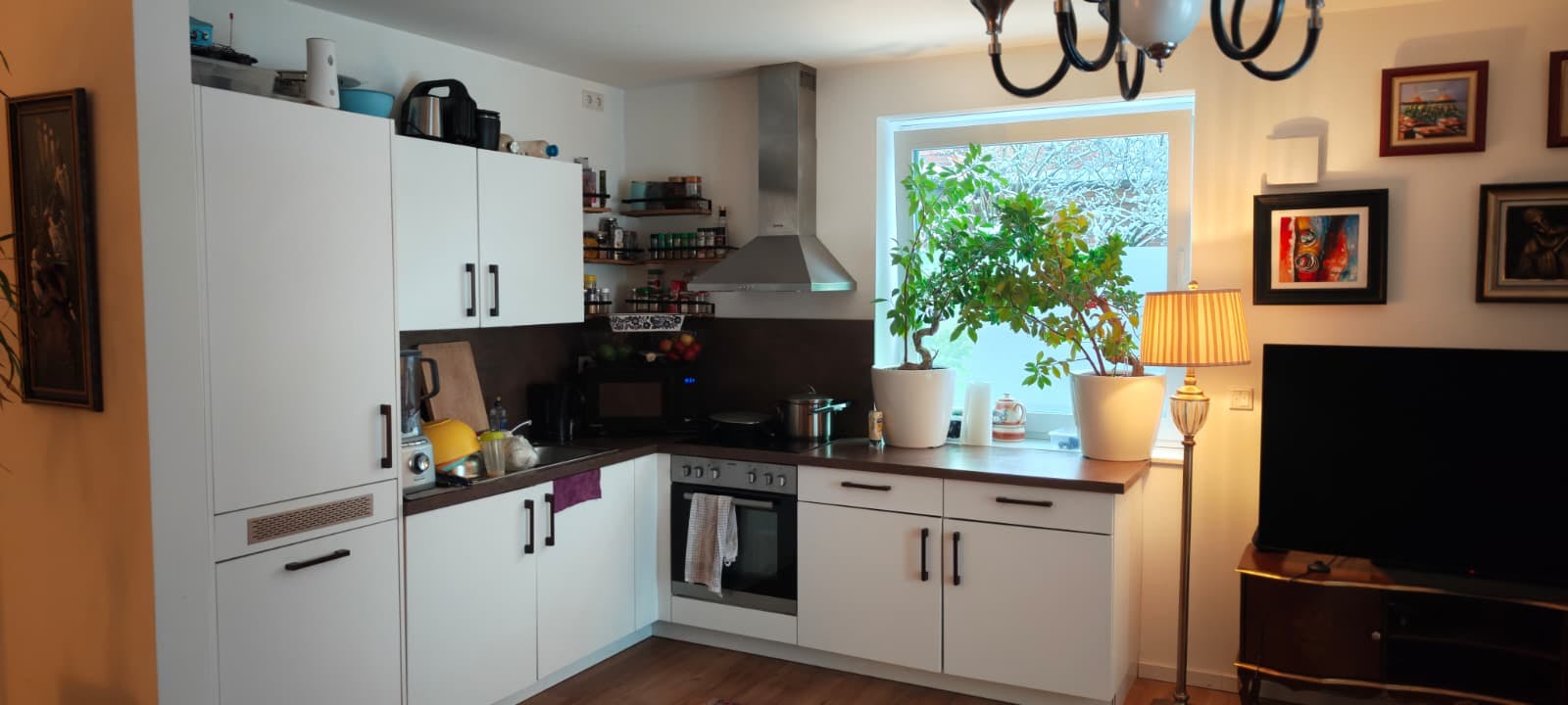 This modern 57 sqm ground-floor apartment is located in a well-maintained, relatively new multi-family building and offers a comfortable living environment ideal for professionals. The apartment features a bright and spacious living room with an open-plan kitchen, a separate bedroom, and a modern bathroom. The living area is tastefully furnished with a cozy sofa, center rug, side drawer, shoe cupboard, mirror, soft table lamps, and a coffee table, creating a warm and welcoming atmosphere. The fully equipped kitchen includes an electric stove, oven, dishwasher, refrigerator, sink, and washing machine—perfect for everyday living. A private terrace with access to the garden provides an...