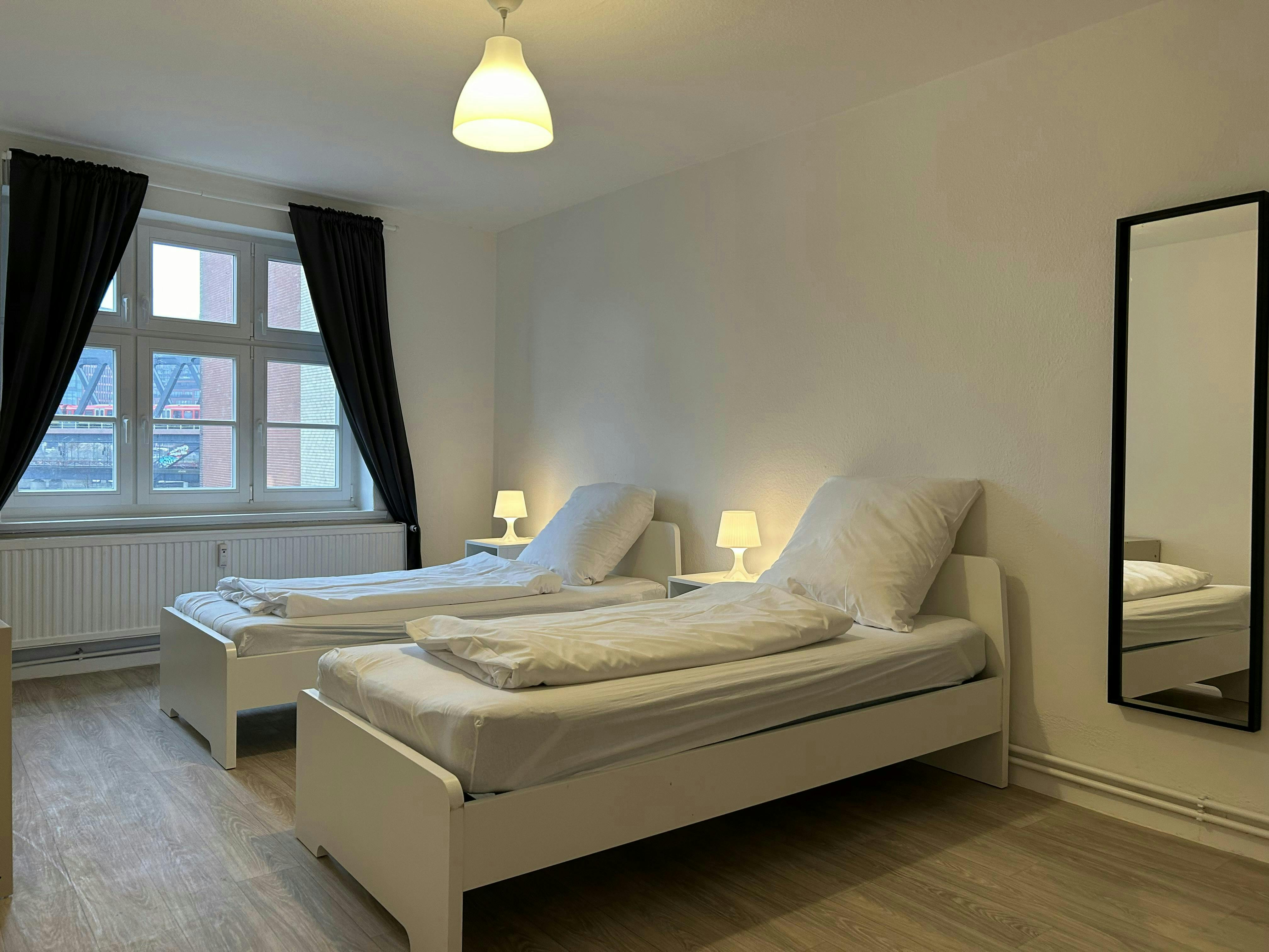Discover a comfortable and convenient stay in this spacious 75m2 apartment located in the vibrant city of Hamburg. With three well-appointed rooms, this accommodation is ideal for groups or families of up to four people, offering four single beds for a restful night's sleep. Situated on the top floor of a two-story building, the apartment features a fully equipped kitchen complete with an oven, microwave oven, fridge, and freezer, perfect for preparing meals at your leisure. The bathroom includes a modern shower, ensuring a refreshing start to your day. Guests will appreciate the shared laundry room, making longer stays more...
