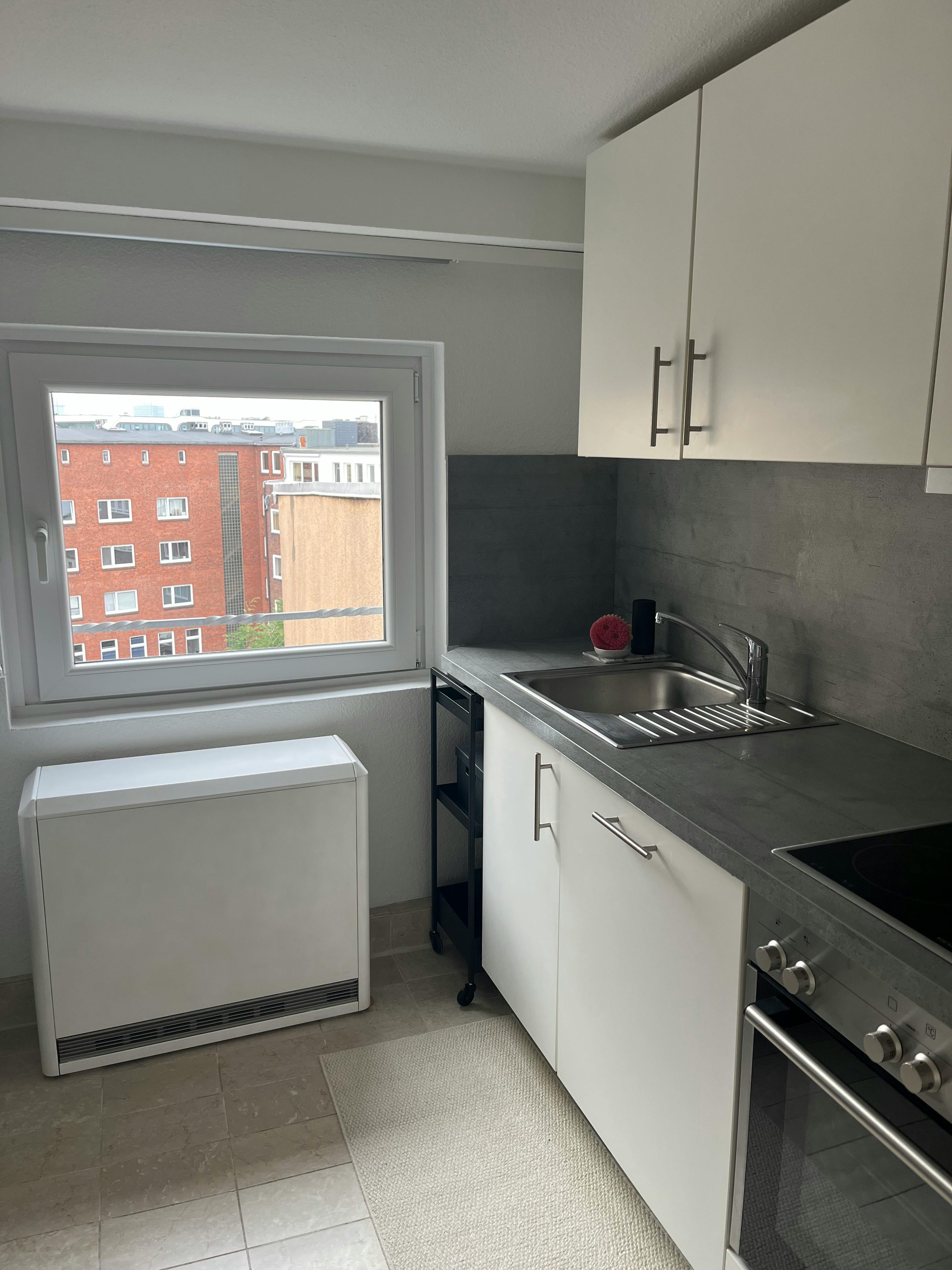 This unique apartment combines historic charm with modern comfort in one of Hamburg’s most desirable central locations. Situated in a beautifully restored Art Nouveau building, this light-filled loft offers a peaceful retreat above the city. Located on the 4th (top) floor, this charming 62 m2 studio apartment features an open loft-style layout with an inviting and airy atmosphere, accentuated by multiple windows and abundant natural light. - Open-plan living and sleeping area - Slightly separated sleeping space with a 140 x 200 cm bed - Exceptionally quiet despite its very central location – windows can comfortably remain open at night From the kitchen, you enjoy...